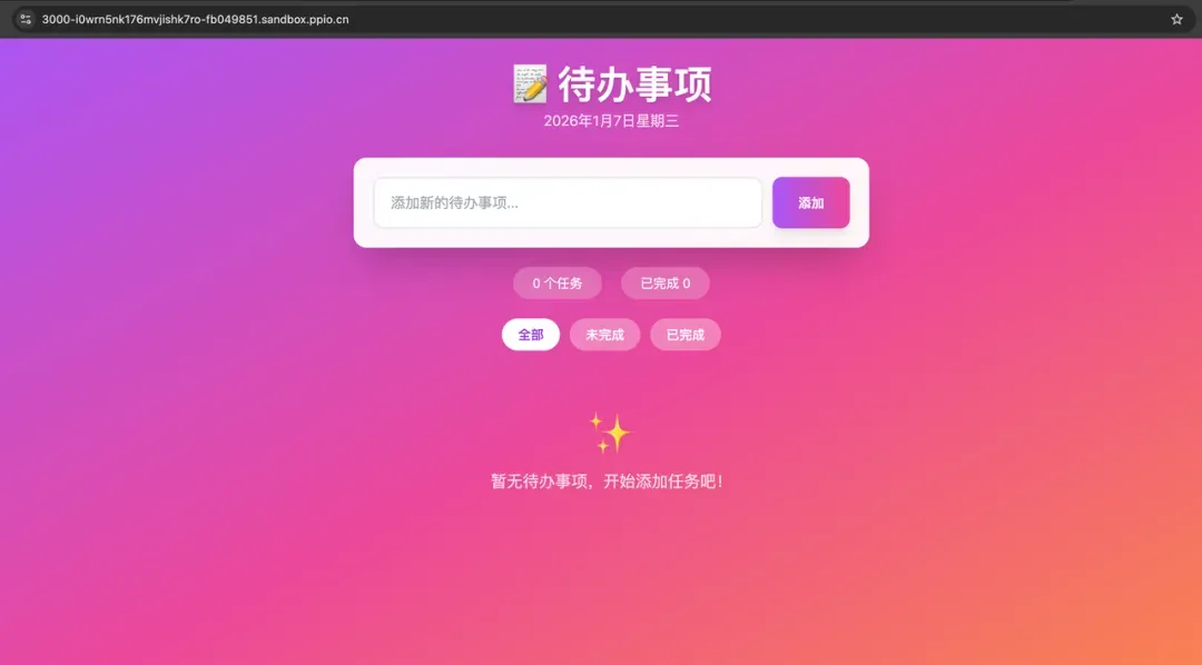 生成结果:现代渐变紫粉色背景的待办事项页面