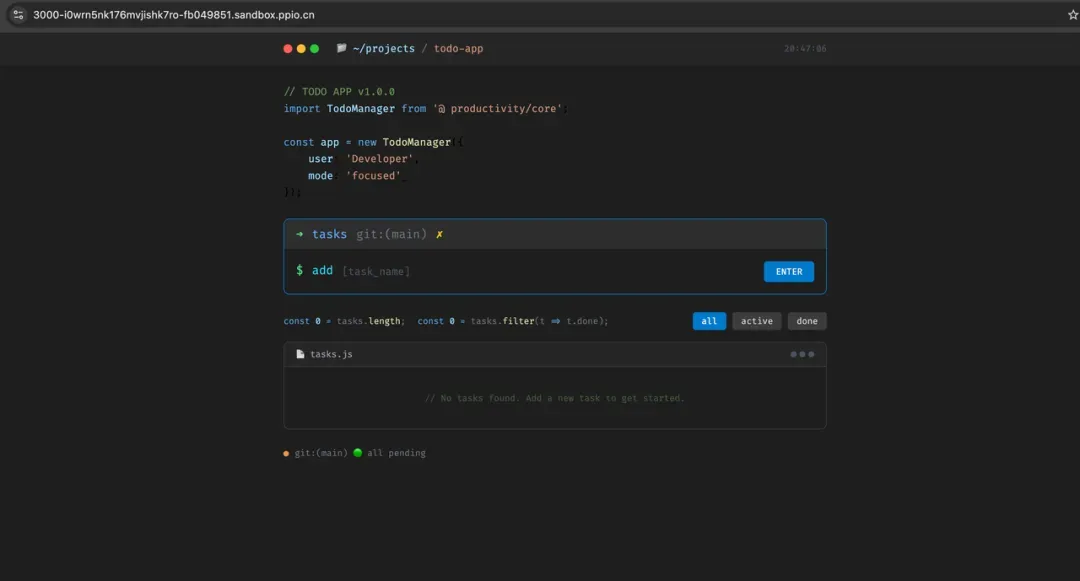 生成结果:开发者主题的终端风格 Todo 应用