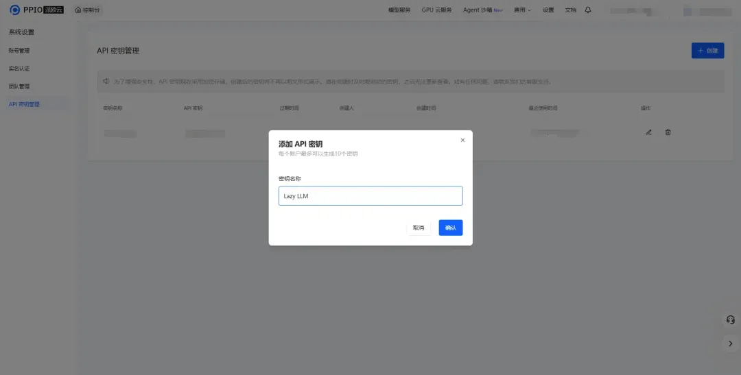 注册 PPIO 账号并获取 API Key。